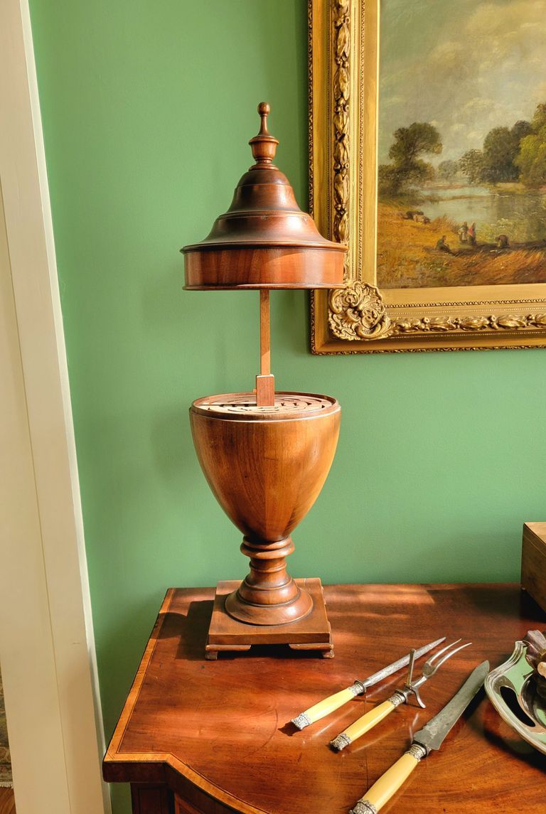 This room can be confusing to visitors due to its size. In a building built for public entertaining, you might expect a larger dining room. When you look carefully, you see that the windows barely fit into the walls on either side of the mantelpiece - this is evidence that the room originally was intended to be larger. When the Hills were struggling to complete their project, they cut down the scope by reducing the size of the back rooms by approximately 4 feet.