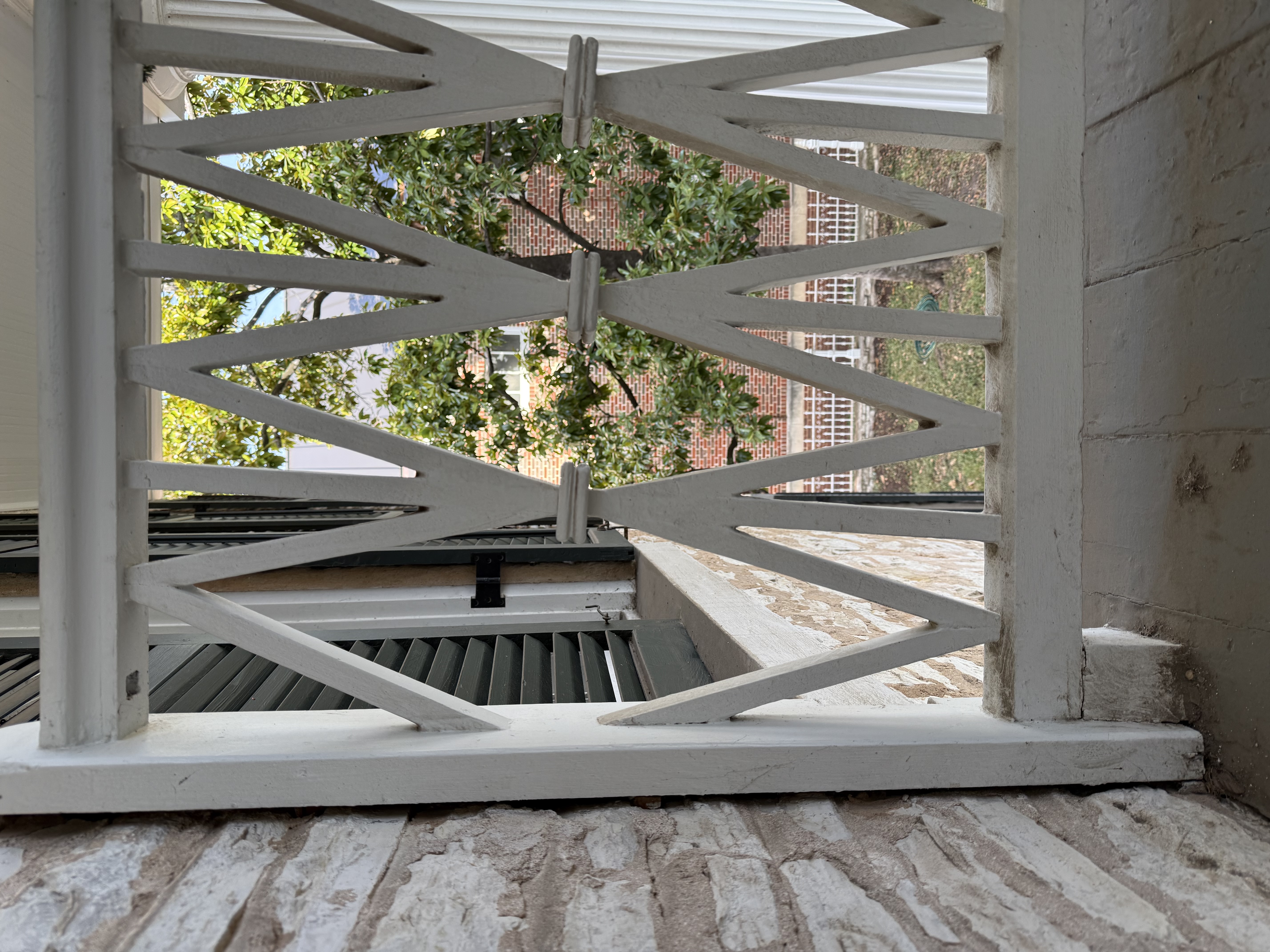 This type of balcony is often referred to as a "Romeo & Juliet" balcony because it cantilevers out from the wall and does not stretch from one end of the building to the other. This may have been another cost-saving strategy for the Hills - the Governor's Mansion balcony stretches the length of the facade.