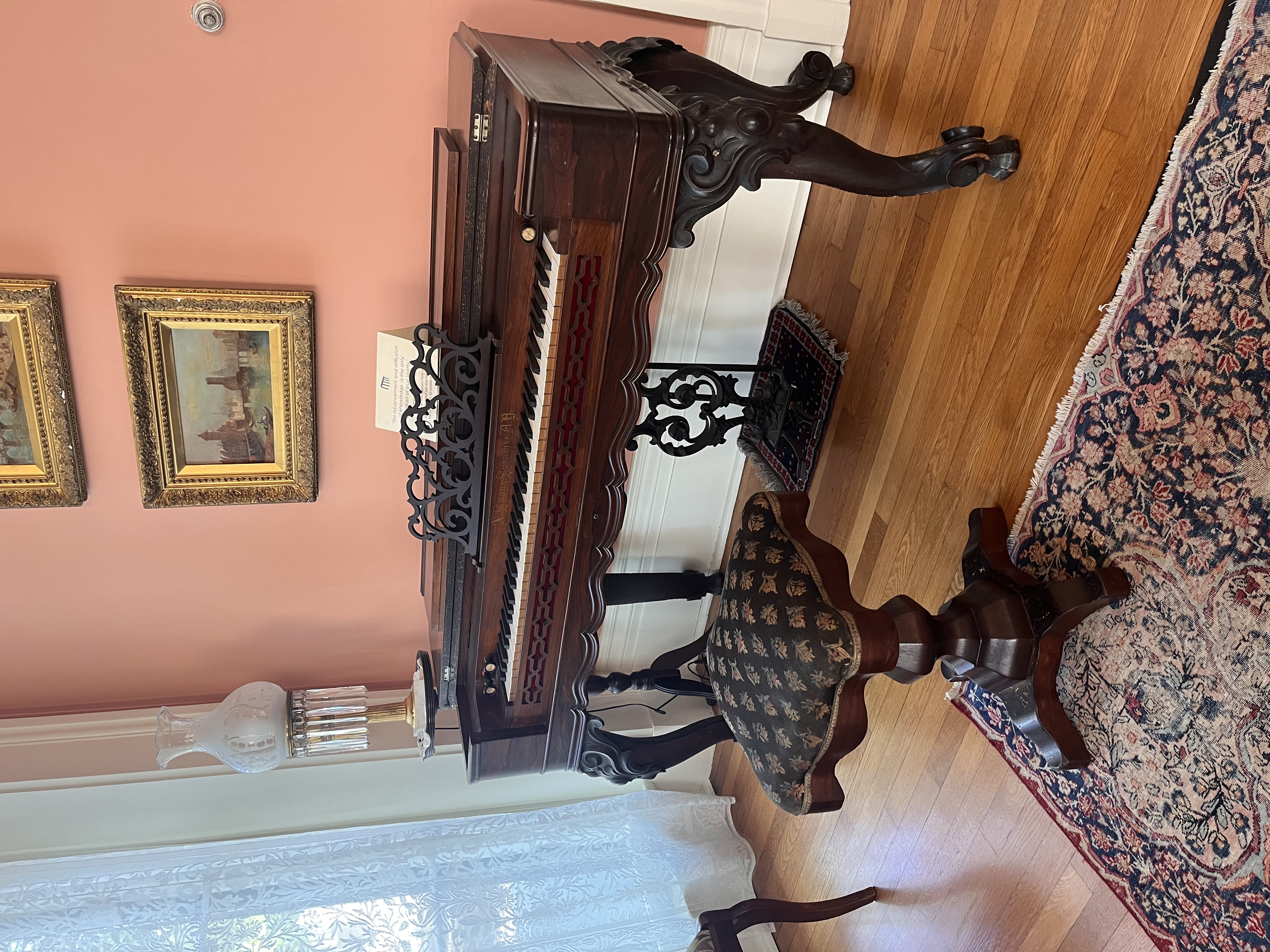 This room is decorated in an eclectice Victorian style and appears much as it might have looked when Mrs. Neill lived in the home in the 1870s and 1880s. The front parlor was often the most elegant room in the home and is where Mrs. Neill received visitors. Its use would have been very different at other moments in our site history, when the house served as the first Texas State School for the Blind (1857-1858) and as a Federal War Hospital (1865-1867).